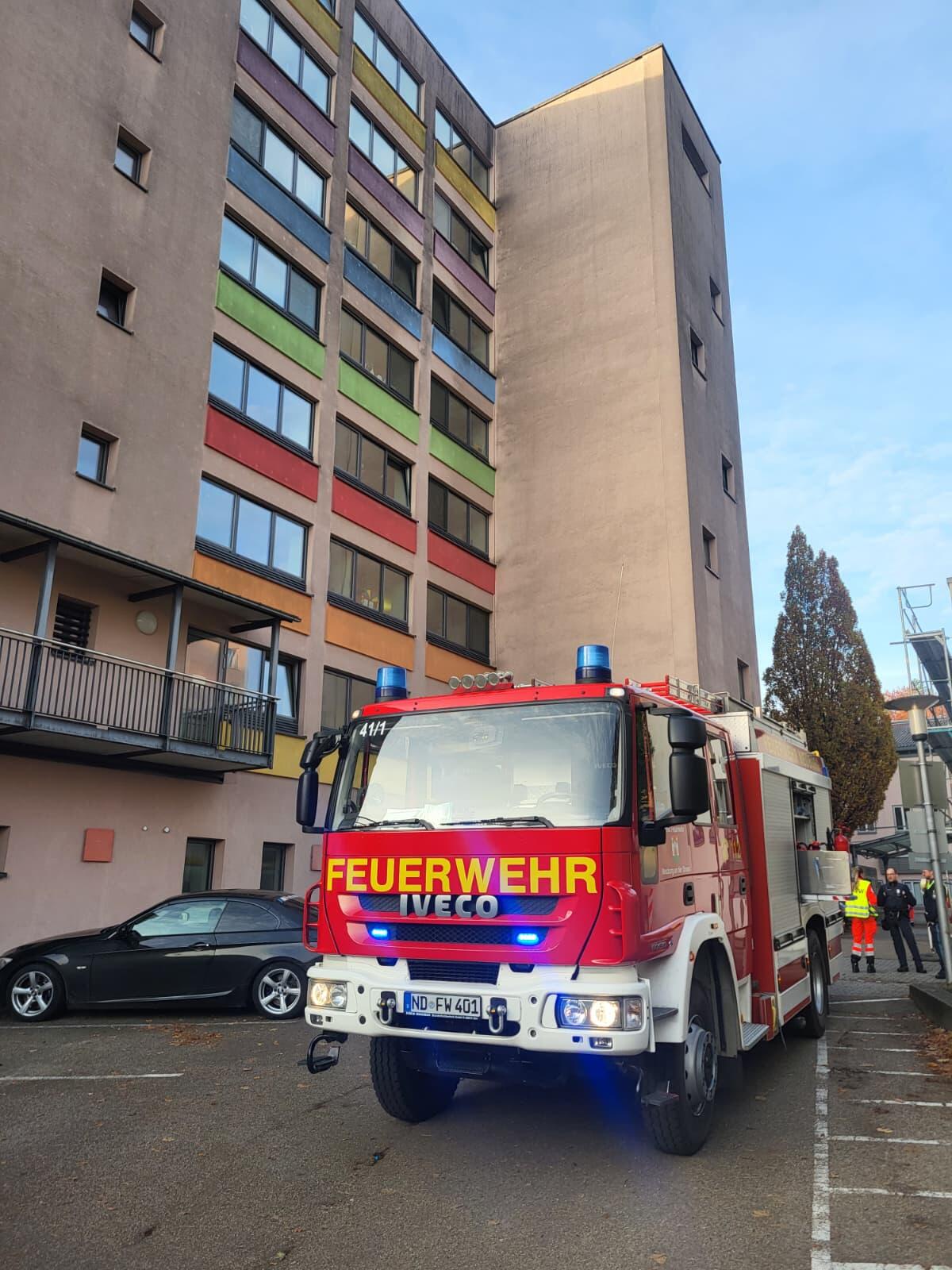 Ein Löschzug der Feuerwehr Neuburg, der Rettungsdienst  und die Polizei rückten zu einer ausgelösten Brandmeldeanlage aus.