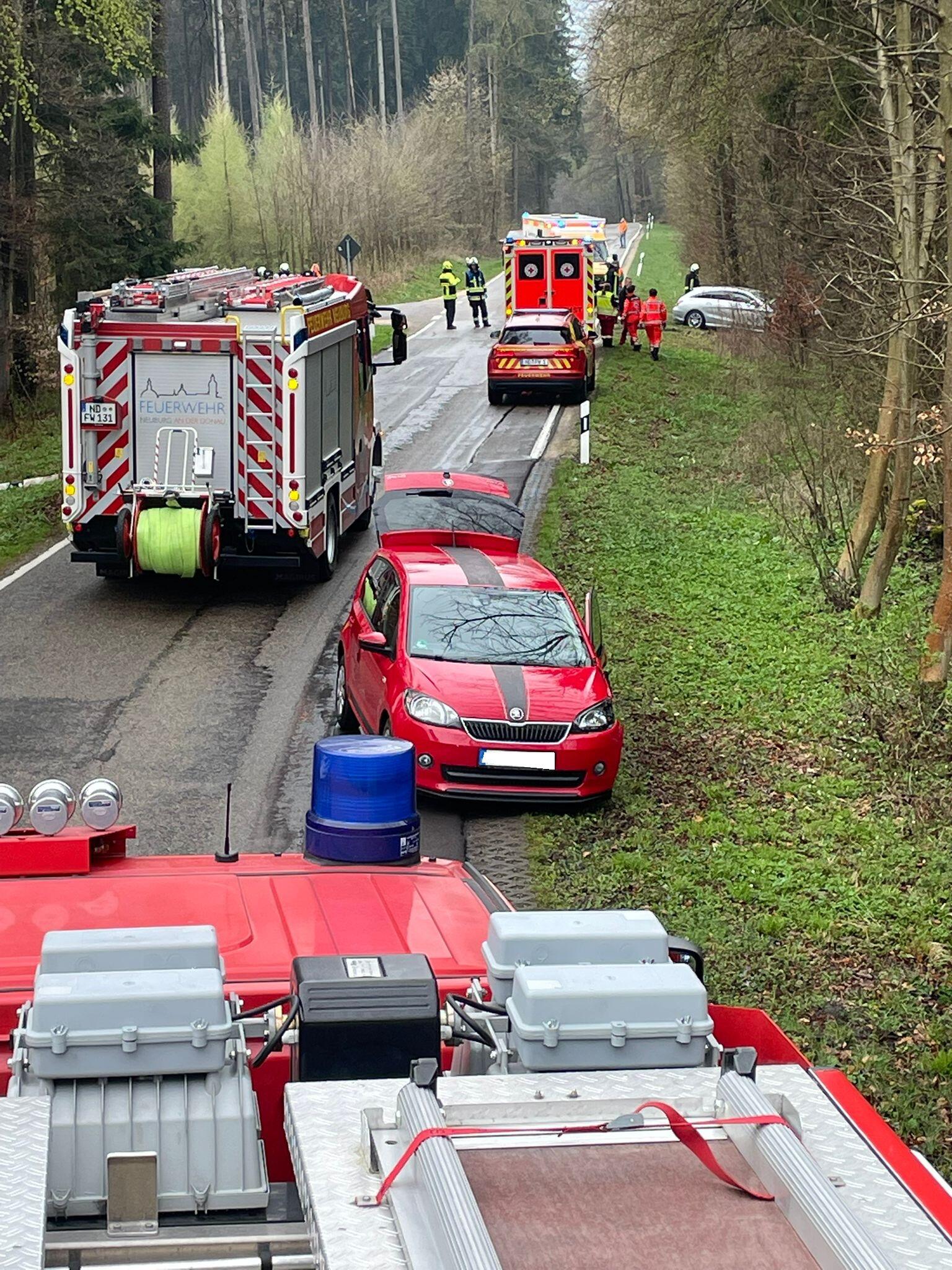 Eine Pkw-Lenkerin, die aus Richtung Neuburg kam, verlor in einer Rechtskurve die Kontrolle über ihr Fahrzeug und kollidierte mit einem entgegenkommenden Pkw.