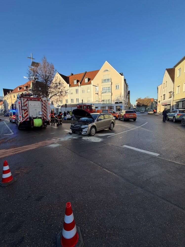 PKW gegen Mauer - Gemeldeter Brand - Bewußtlos