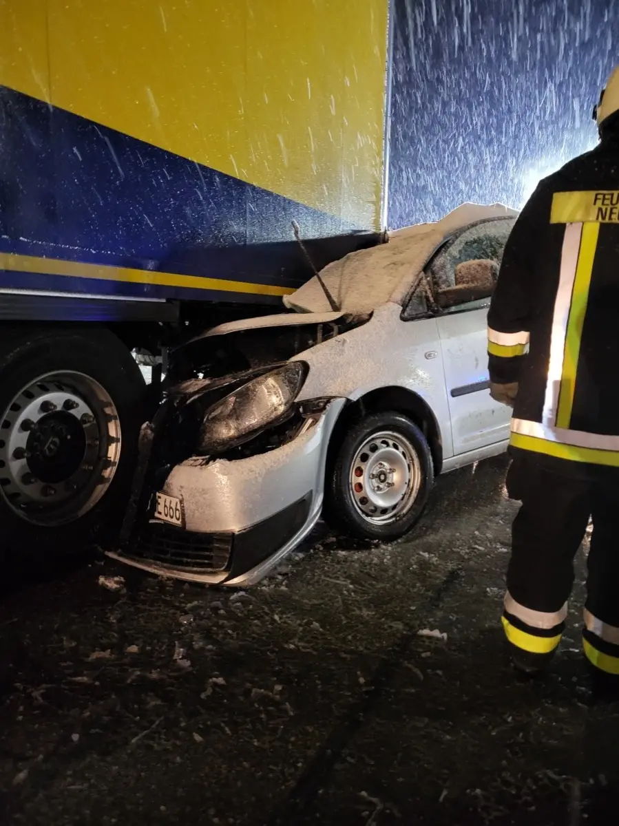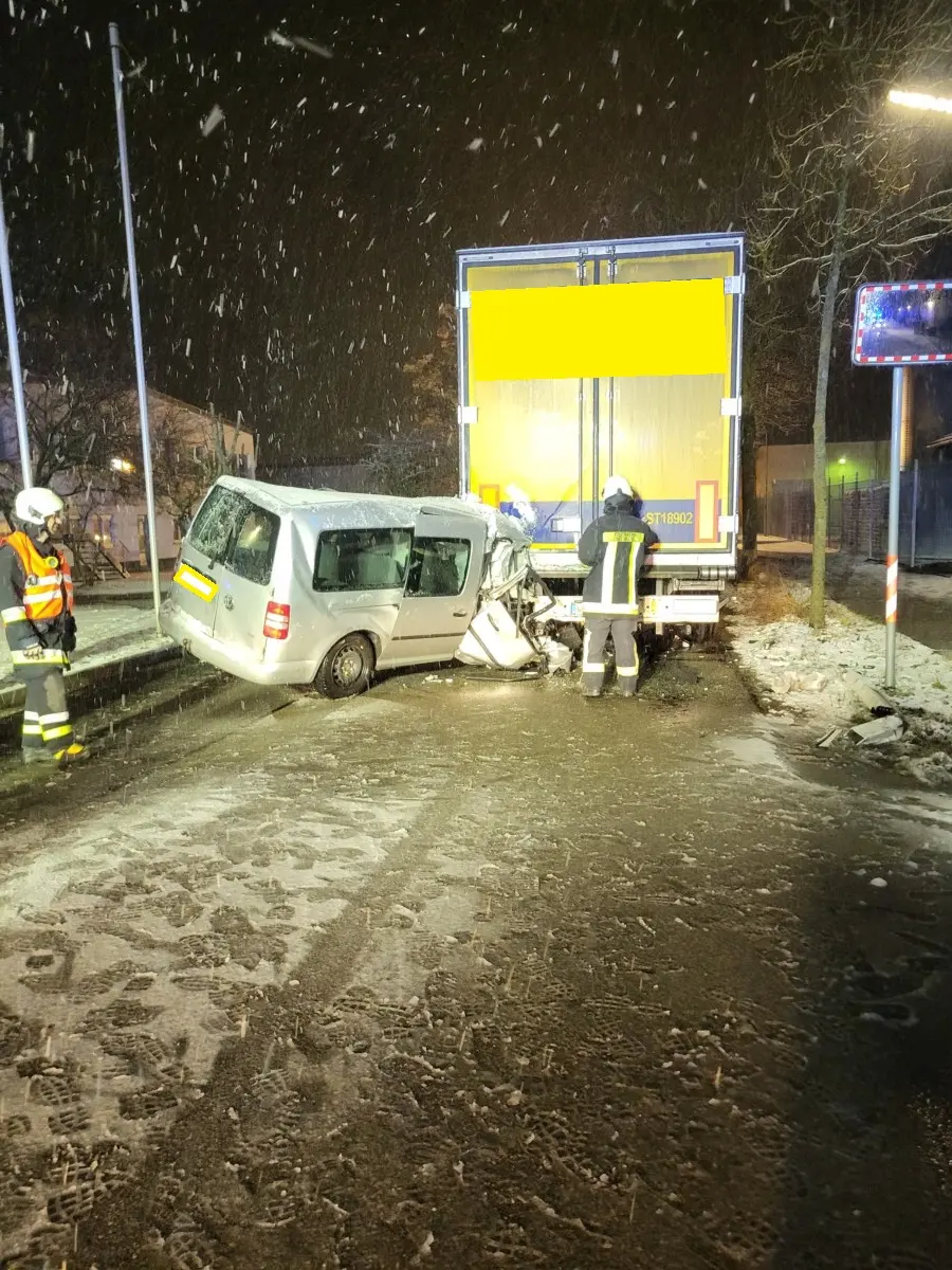 Der Fahrer eines VW Caddy fuhr in der nördlichen Grünauer Straße auf einen stehenden Lkw auf. Der erste Eindruck war heftig, allerdings konnte der Fahrer noch selbstständig und nur leicht verletzt aus seinem Fahrzeug aussteigen.