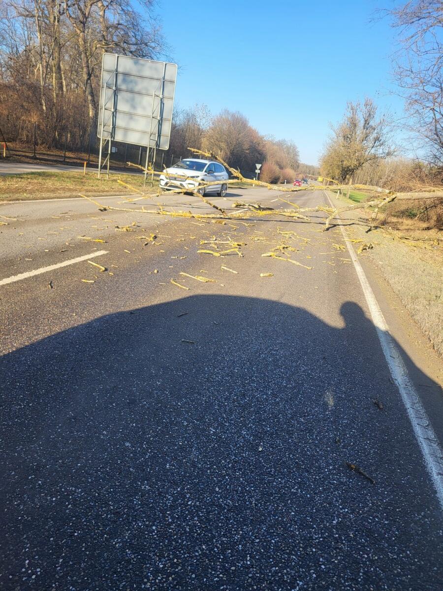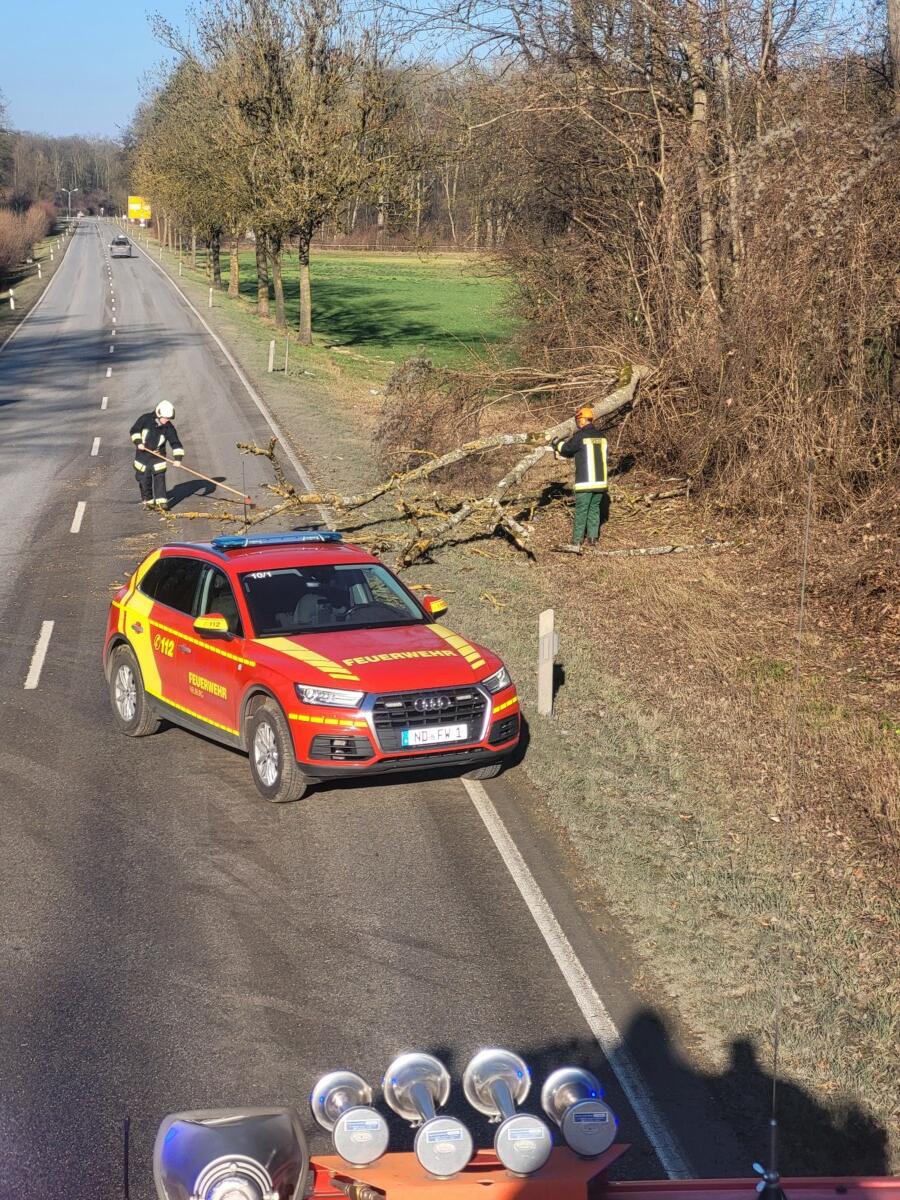 Ein umgestürzter Baum blockierte die Fahrbahn vollständig.